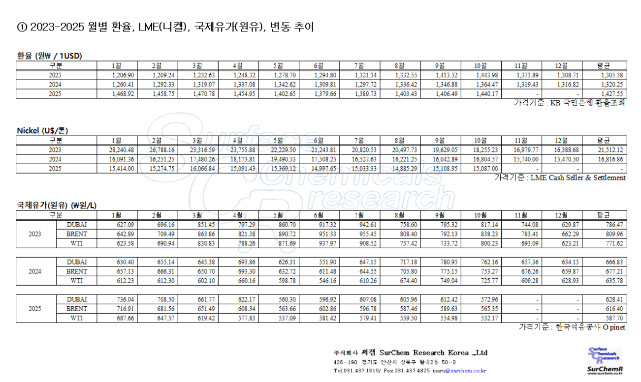 2025.10 니켈(LME), 환율(보내는기준), 국제유가(원유) 자료
